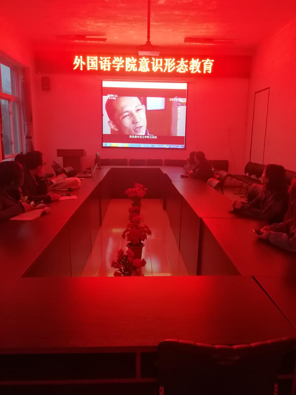 在知行楼二楼会议室开展意识形态教育活动,全院新疆籍学生和主要学生干部参加本次活动。