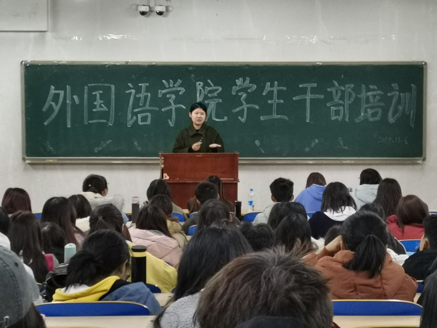 张亚男老师指出学生干部应做好带头作用,以“生正逢时,也重任在肩”引发学生干部对个人与国家关系的思考。提纲掣领的提出:作为学生干部应积极主动的应对问题—培养创新思维能力,扎实学业基础,拓宽知识面,终身学习,高效沟通。黄秋雨老师则对开学以来学生干部工作做出了总结,肯定了工作的同时也提出不足之处和改进方法。