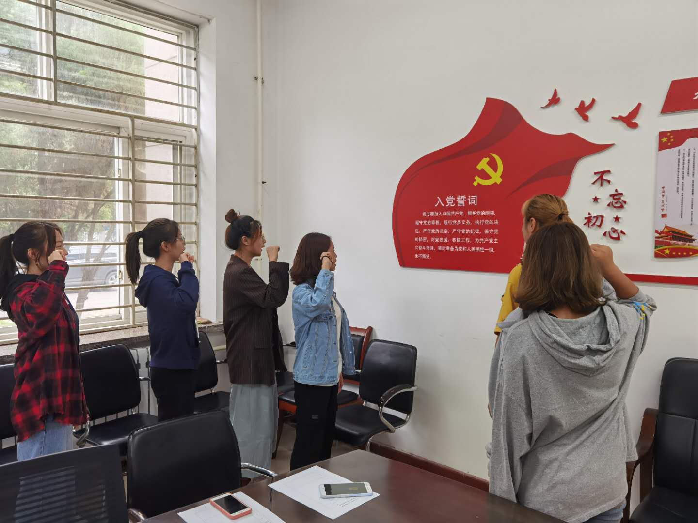 学生党支部于9月3日在知行楼一楼会议室举办新学期第一次主题党日活动“不忘初心跟党走”,学院党委副书记张亚男、学生党支部书记黄秋雨和全体党员参加本次活动。