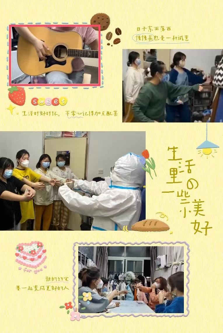 提出制作vlog创意的李勇禛说:“封校生活让寝室人有更多的时间学习、生活在一起,你带我来打太极,我来教你乒乓球,弹吉他吹口琴拉二胡,生活这么丰富,我们要弄个’封’神榜!”舞蹈、绘画、体育竞技、乐器演奏等才艺纷纷亮相寝室舞台,学院每天在学院微信公众号平台上传一个寝室的作品,传递学生积极乐观的抗疫精神,以蓬勃向上的精神面貌彰显当代青年的情怀担当,既有效果,更有温度。每完成一个寝室的Vlog视频,老师们也及时转发给家长,让家长了解孩子在校的学习生活状态,让家长放心安心。