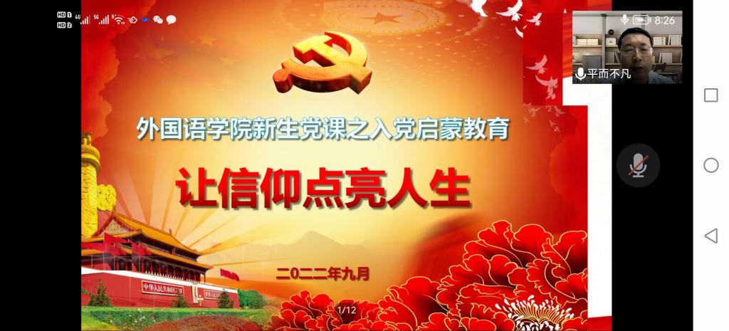 组织2022级新生开展入党启蒙教育讲座,本次讲座由学院党委书记孙宝成主讲,学院全体2022级新生和学生党支部书记黄秋雨参加。