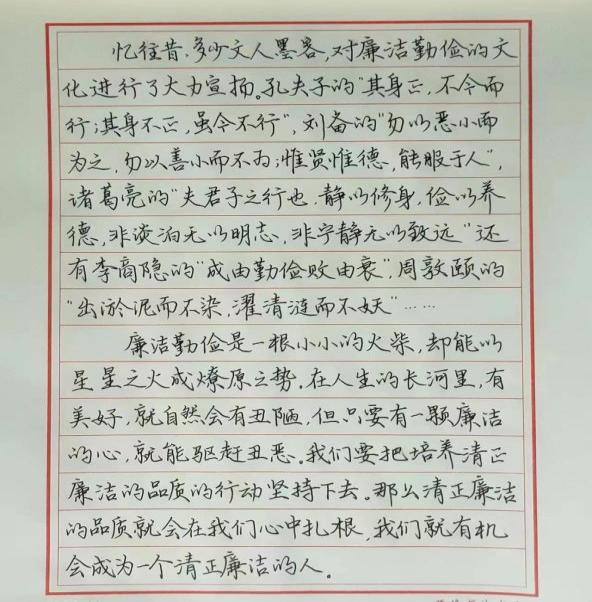 于2022年10月学院举办“廉文化”作品大赛,比赛以“学史崇德扬清风正气 廉心向党颂百年风华”为主题,面向全院师生征集“廉文化”作品,包括书画作品、原创诗词、摄影作品、微视频等多种形式,师生踊跃报名参与,共征集30余份作品。经评审,共9份作品获奖。此次活动体现师生良好的风貌,提高了廉洁自律意识。