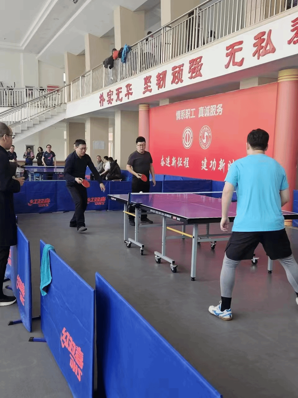 冯雪、杨洋、宋艳儒、冷德军四位教师组成的教师团队在比赛中展现了团结协作、拼搏进取的精神风貌,在男子团体赛中,他们默契配合,发挥出色,最终荣获了亚军的好成绩。在男子单打比赛中,九秀直播