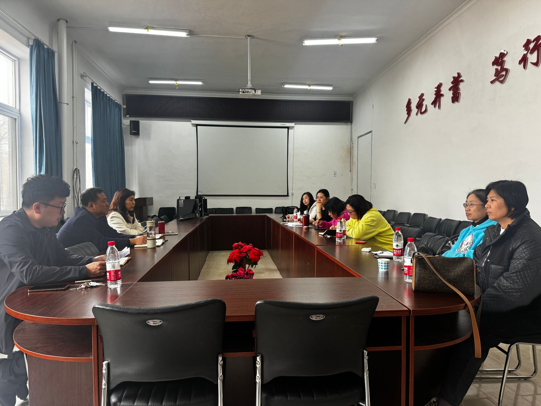 党委书记苏海泉、院长王丽、副书记杨洋、英语系教师参加会议。