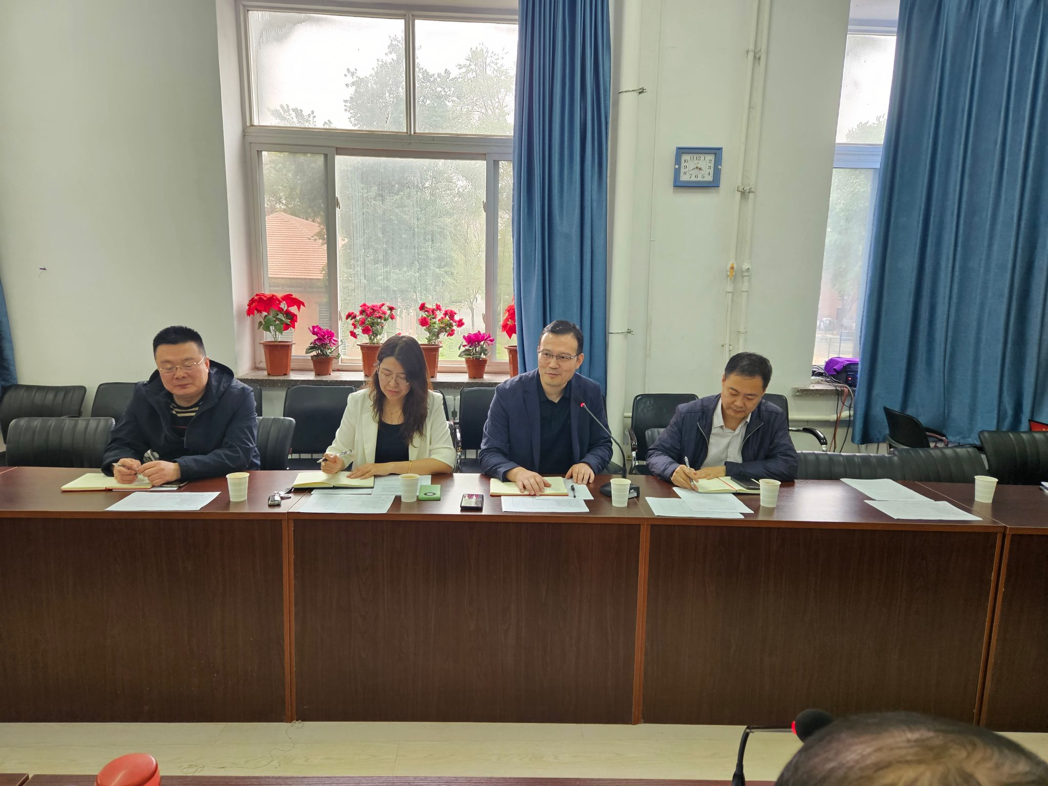 5月11日下午15:40,教务处长狄军贞、副处长徐耀松、教务科科长刘克铭、学科处科长柴博一行4人来到九秀直播