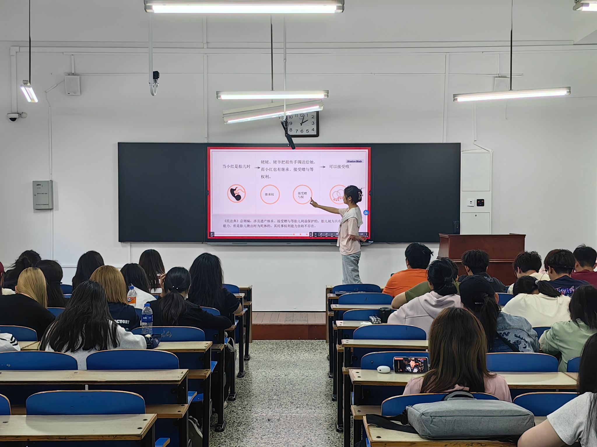 首先,杨雯雯老师对《中华人民共和国民法典》进行了介绍,接着,以《民法典》内容为基础,并结合日常生活中可能遇到的各种典型案例,详细讲解了大学生作为18周岁以上的完全民事行为能力人应享有的权利义务以及如何保护个人信息、面对不法侵害该如何应对等一系列贴近学生日常生活的法律知识,使学生们对如何正确保护自己的合法权益不受侵害有了更为直观的理解。