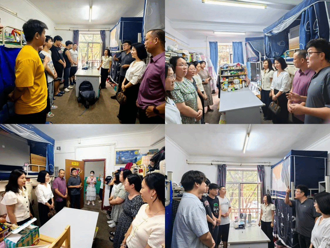 院长王丽、副书记杨洋、副院长冯雪、范洪涛、党政办主任李爽、学院辅导员黄秋雨、杨雯雯来到学生寝室,了解学生返校情况、生活状态以及住宿环境。