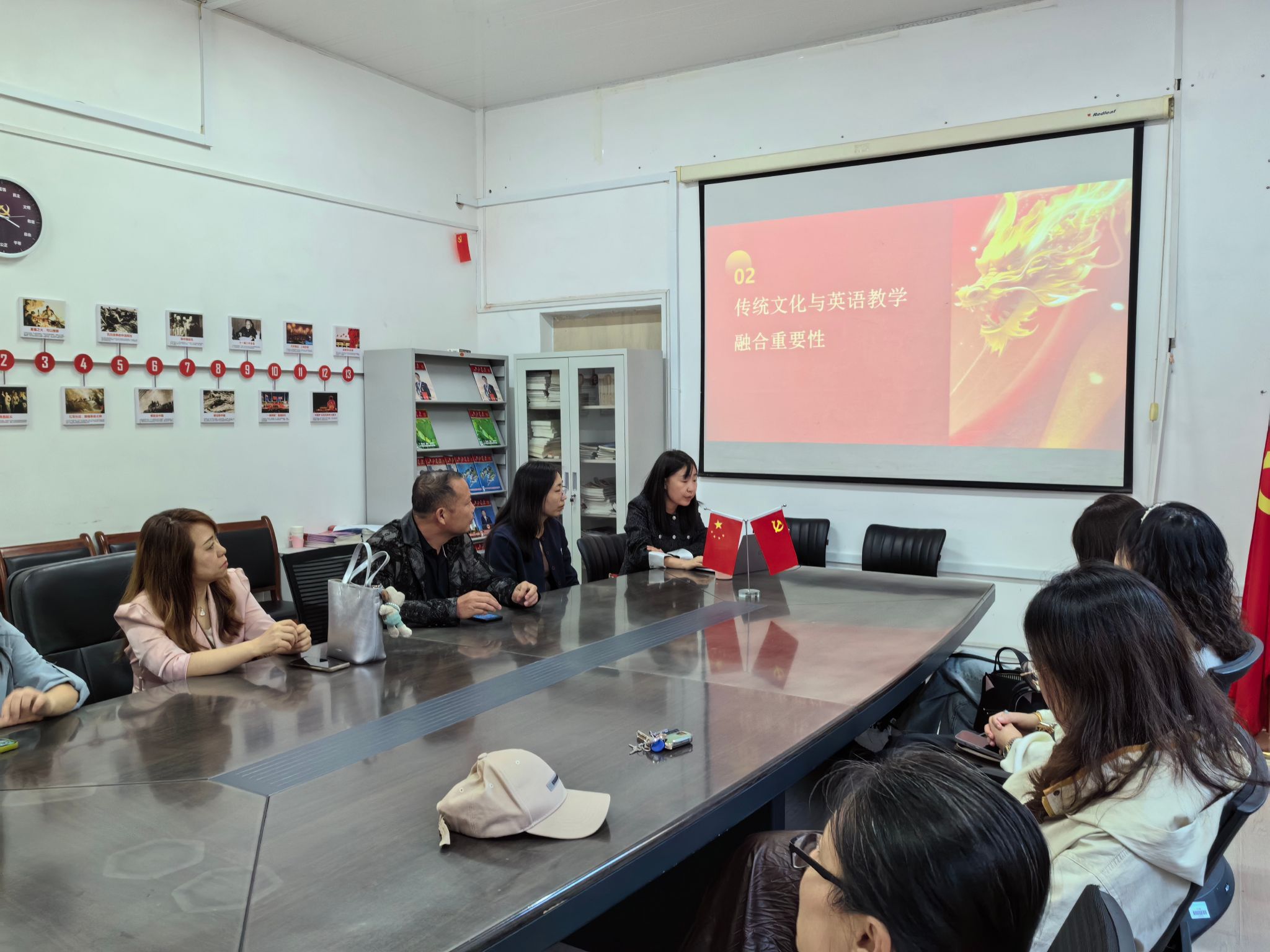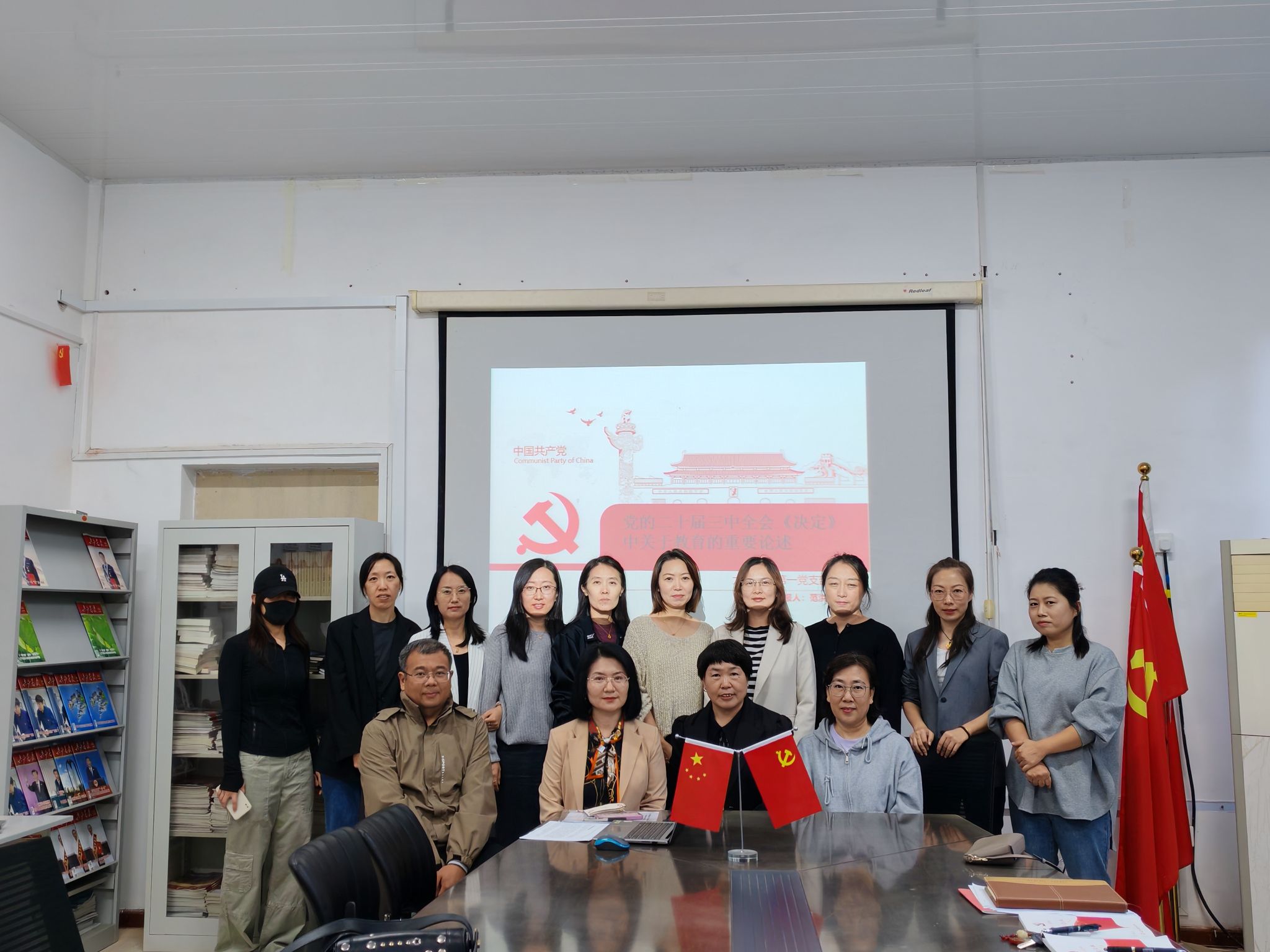 陈鸿雁、范洪涛、赵紫薇三位党员教师分别以“大思政视域下的英语专业课程思政教学”“《中共中央关于进一步全面深化改革、推进中国式现代化的决定》中关于教育的重要论述”以及“中华优秀传统文化与大学英语教学的融合”为题,分享政治理论学习心得,并进行大学外语课程思政设计。与会老师分别围绕主题开展课程思政教学研讨,进一步提高了“为党育人、为国育才”的使命感和责任感。