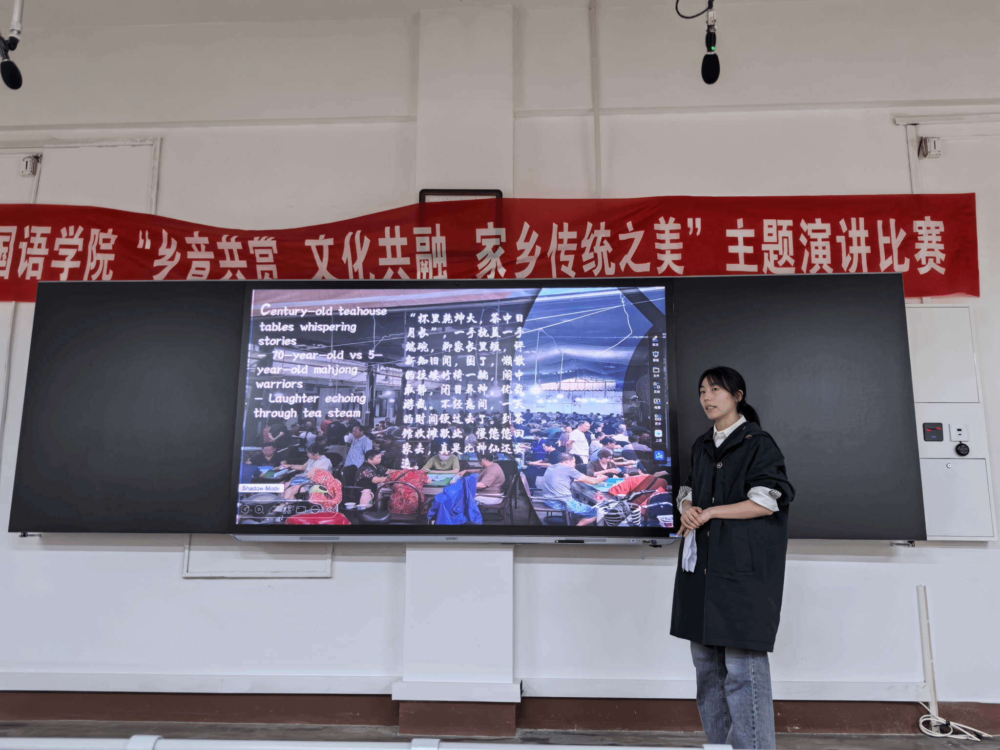 于新华楼106成功举办第二届"乡音共赏,文化共融,家乡传统之美"英语演讲比赛。本次活动由学院学生工作部主办,2024级全体学生共同参与。