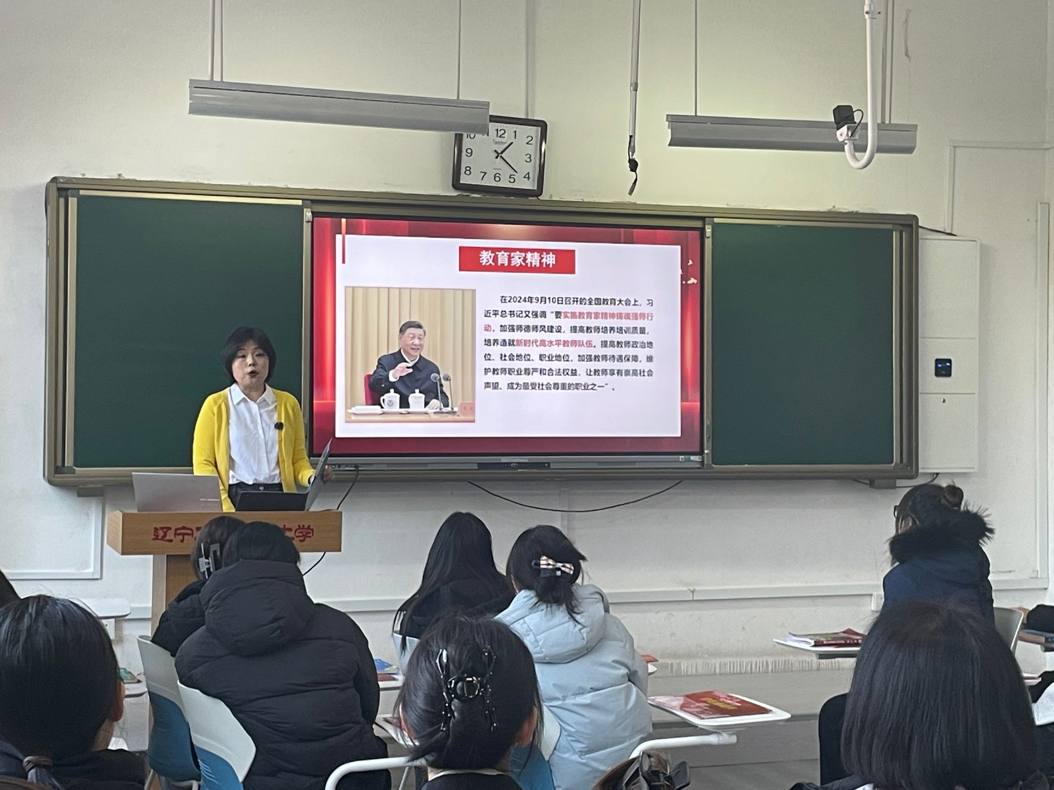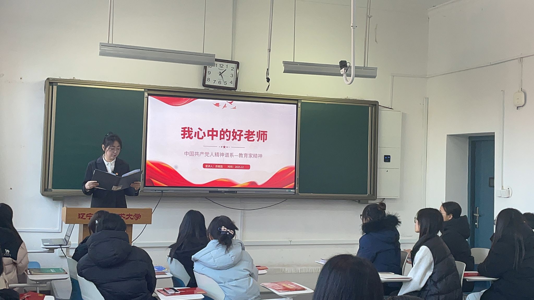 随后,学生党员代表苏朝蕊结合自身学习经历,以“我心中的好老师”为题进行宣讲,以青年学生的视角,分享了她对教育家精神的理解与感悟,讲述了身边多位师长践行教书育人使命的感人事迹,生动诠释了新时代辽工程外语人坚守初心、立德树人的精神风貌。