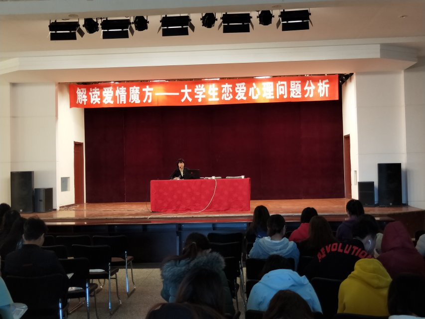 陈晓蕾老师在讲座上准确的指出了大学生阶段所面临的爱情问题,分析爱情与人生、恋爱与学业、恋爱与婚姻的关系,引导学生对待爱情的态度要既不要随意牵手,也不要随意放手。帮助学生解决恋爱交中的小烦恼,解答异性朋友间相处的困惑。